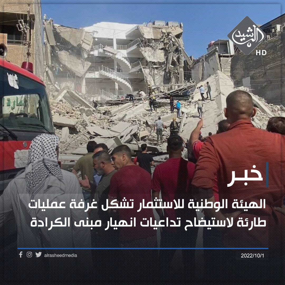 الهيئة الوطنية للاستثمار تشكل غرفة عمليات طارئة لاستيضاح تداعيات انهيار مبنى الكرادة
