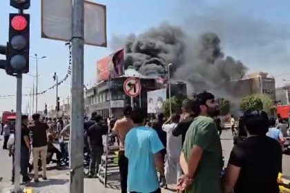 اندلاع حريق داخل بناية تجارية في حي الجامعة غربي بغداد.. فيديو