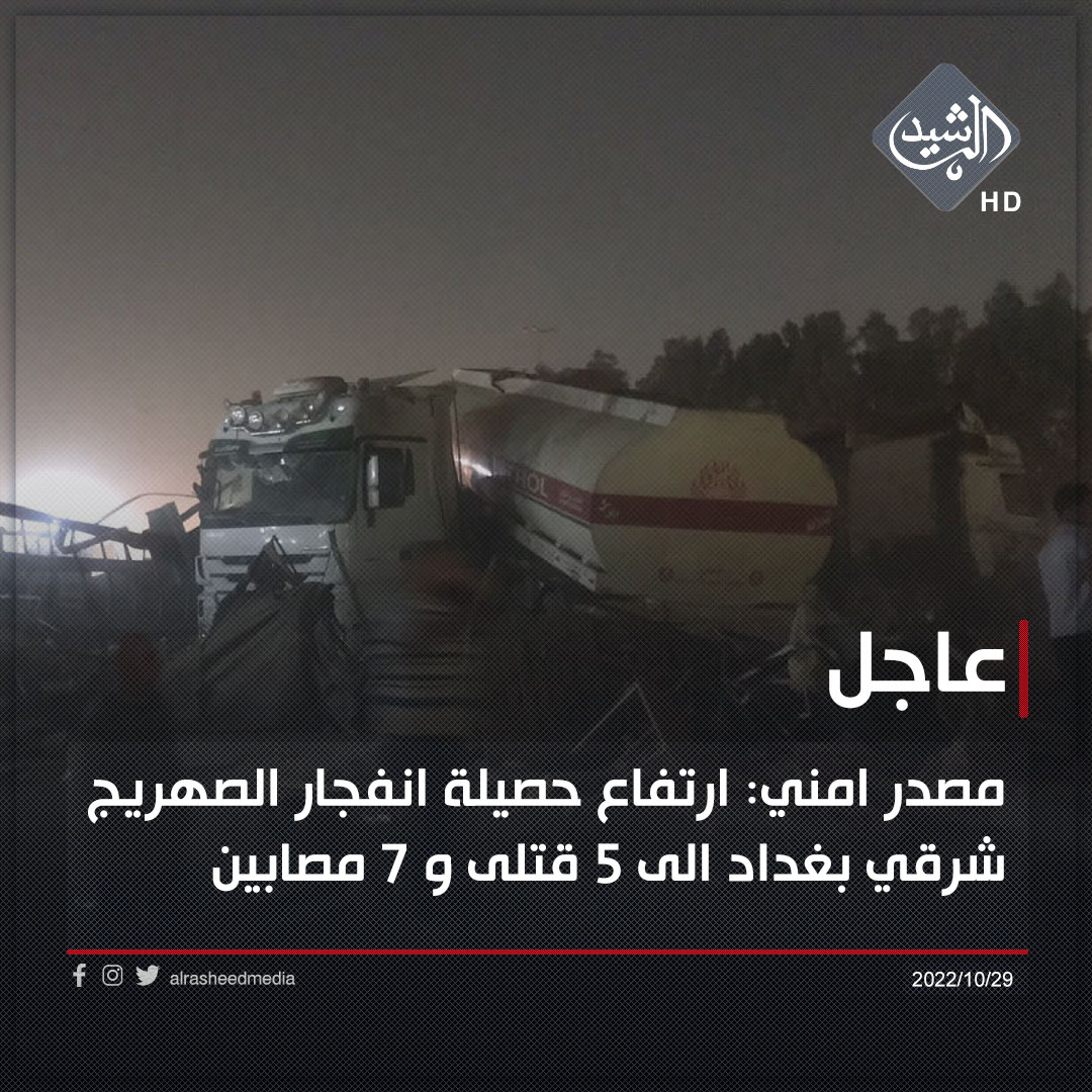 مصدر امني: مقتل واصابة 10 اشخاص بانفجار صهريج شرقي بغداد