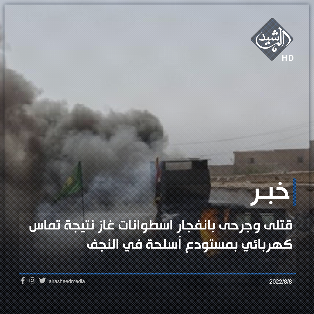 قتلى وجرحى بانفجار اسطوانات غاز نتيجة تماس كهربائي بمستودع أسلحة في النجف