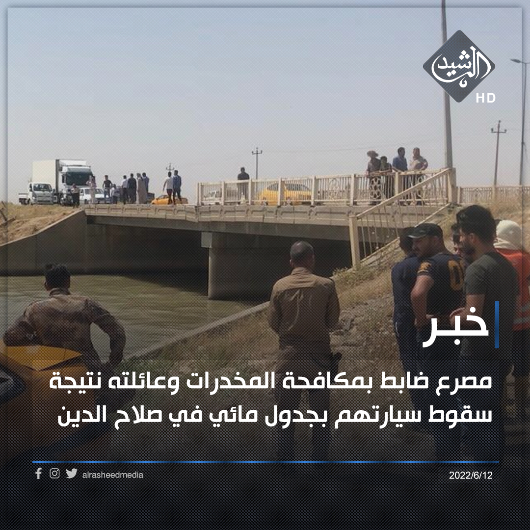 مصرع عائلة مكونة من اربعة اشخاص نتيجة سقوط سيارتهم بجدول مائي بصلاح الدين