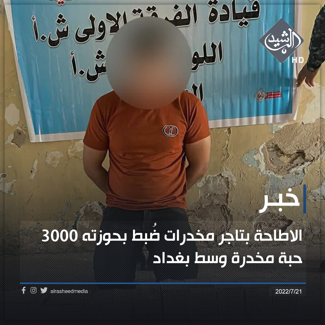 الاطاحة بتاجر مخدرات ضُبط بحوزته 3000 حبة مخدرة وسط بغداد