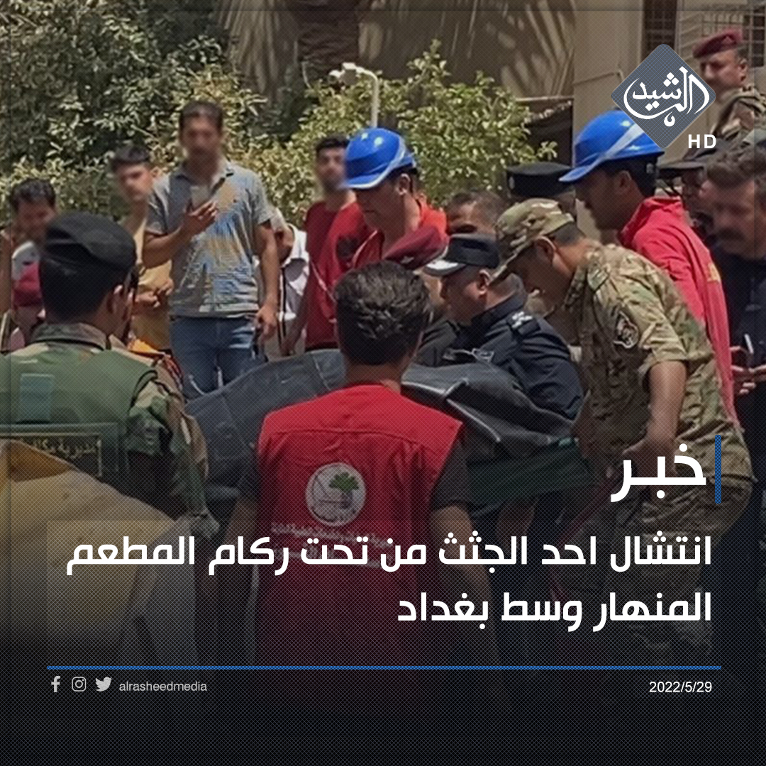 الدفاع المدني ينتشل جثة اخرى من تحت انقاض المطعم المنهار وسط بغداد