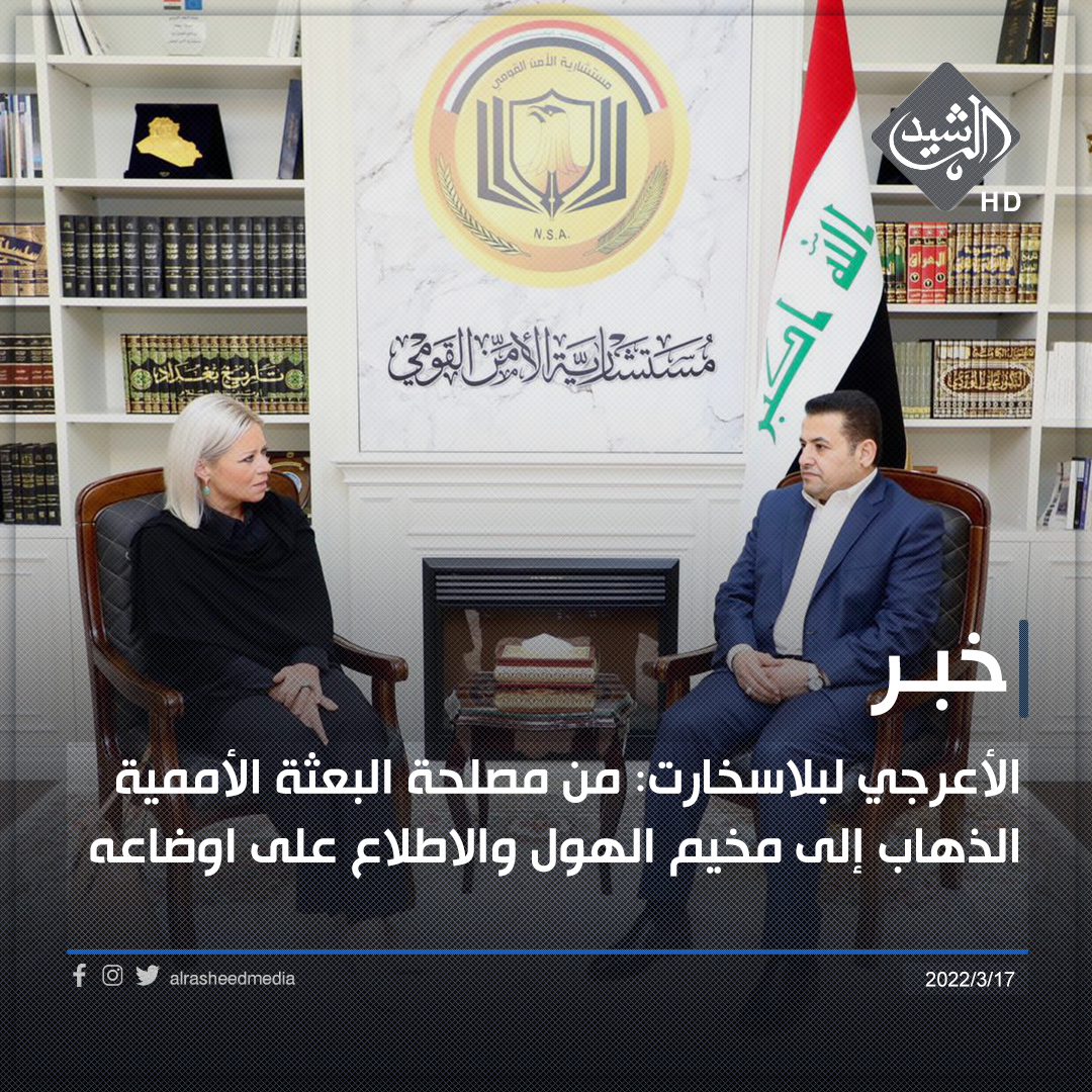 الأعرجي لبلاسخارت: من مصلحة البعثة الأممية الذهاب إلى مخيم الهول والاطلاع على اوضاعه