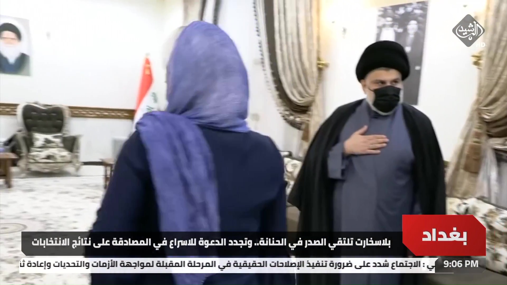 بلاسخارت تلتقي الصدر في الحنانة.. وتجدد الدعوة للاسراع في المصادقة على نتائج الانتخابات