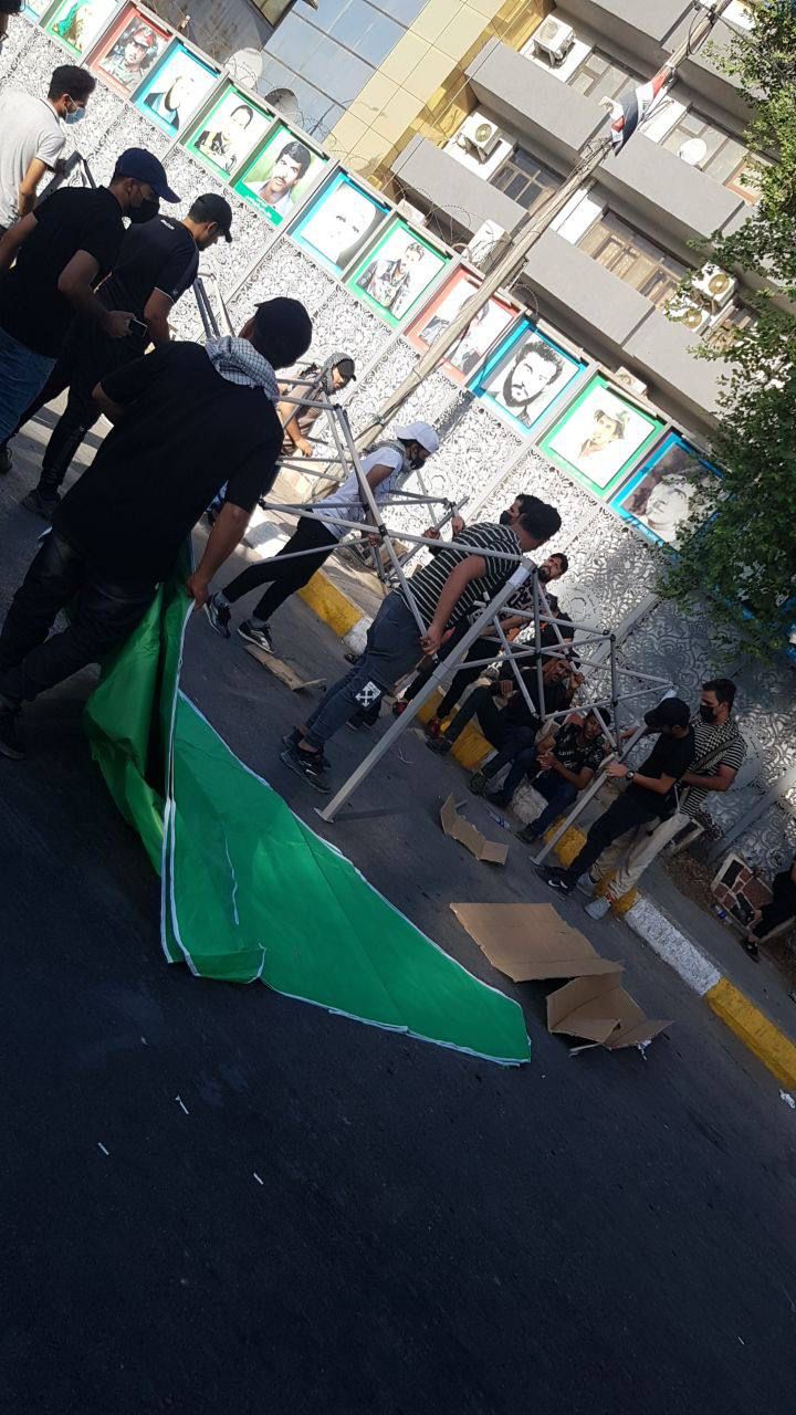 بالصور .. المتظاهرون يباشرون بنصب الخيم امام بوابة الخضراء استعداداً للبدء اعتصام مفتوح