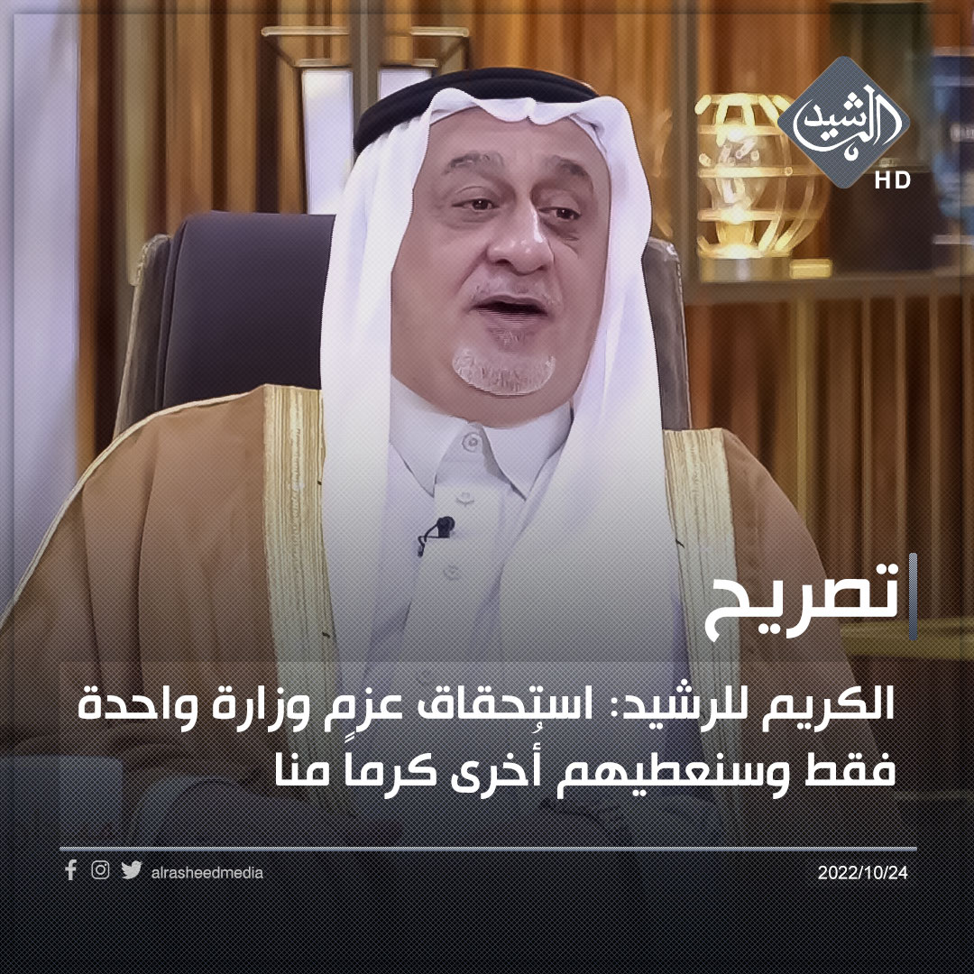 الكريم للرشيد: استحقاق عزم وزارة واحدة فقط وسنعطيهم أُخرى كرماً منا