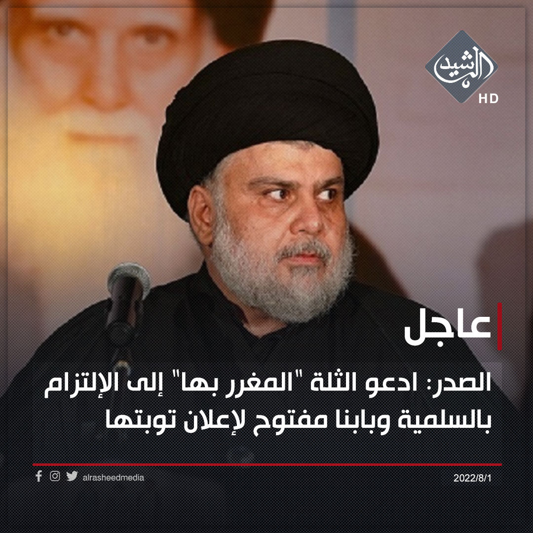 السيد الصدر: ادعو الثلة "المغرر بها" إلى الإلتزام بالسلمية وبابنا مفتوح لإعلان توبتها والالتحاق بفسطاط الإصلاح