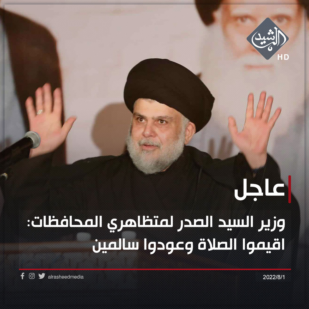 وزير السيد الصدر لمتظاهري المحافظات: اقيموا الصلاة وعودوا سالمين