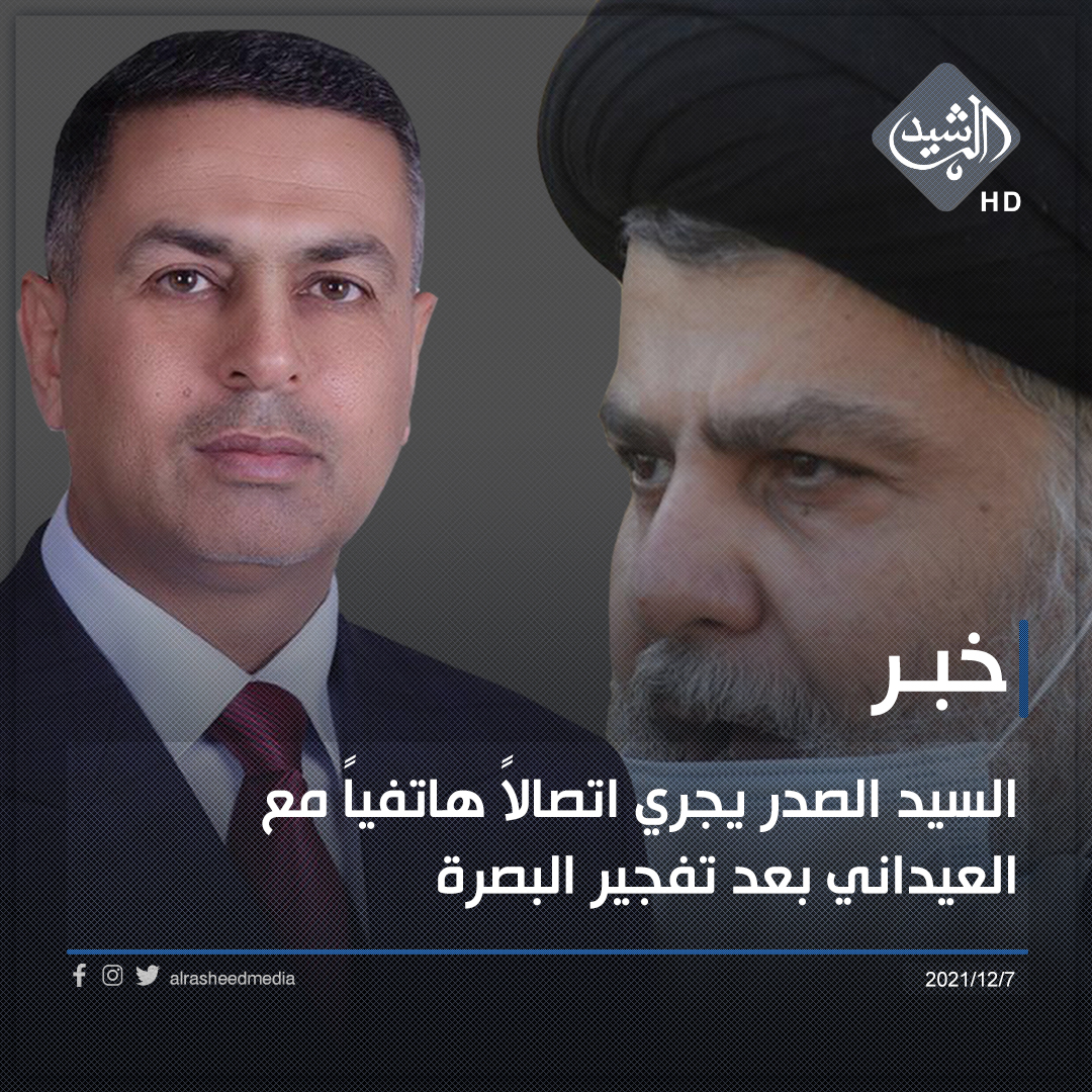 السيد الصدر يجري اتصالاً هاتفياً مع العيداني بعد تفجير البصرة