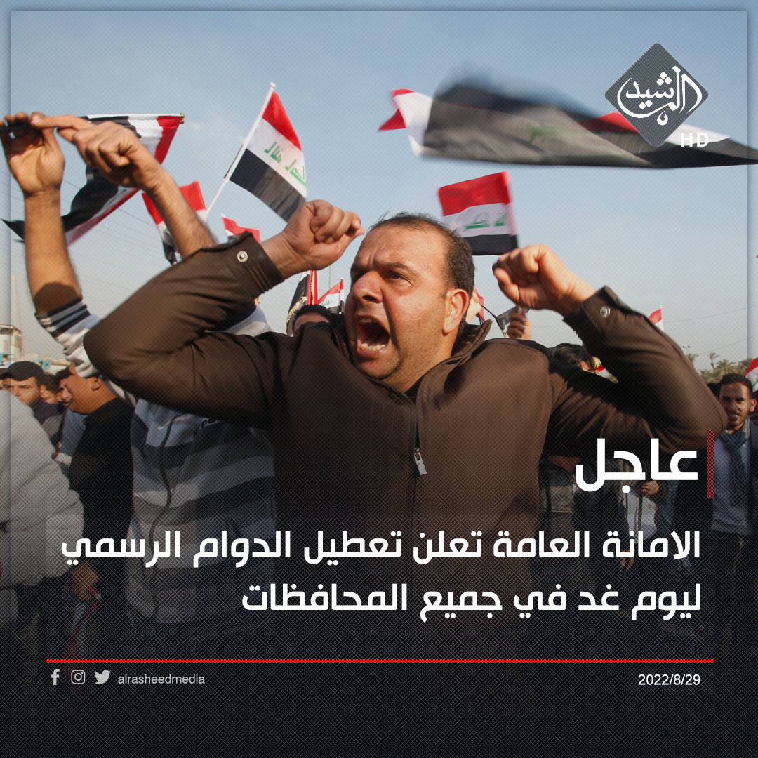 الامانة العامة تعلن تعطيل الدوام الرسمي ليوم غد في جميع المحافظات