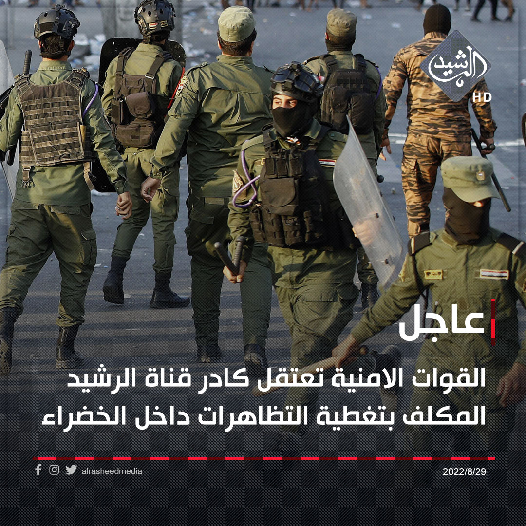القوات الامنية تعتقل فريق قناة الرشيد المكلف بتغطية التظاهرات داخل المنطقة الخضراء