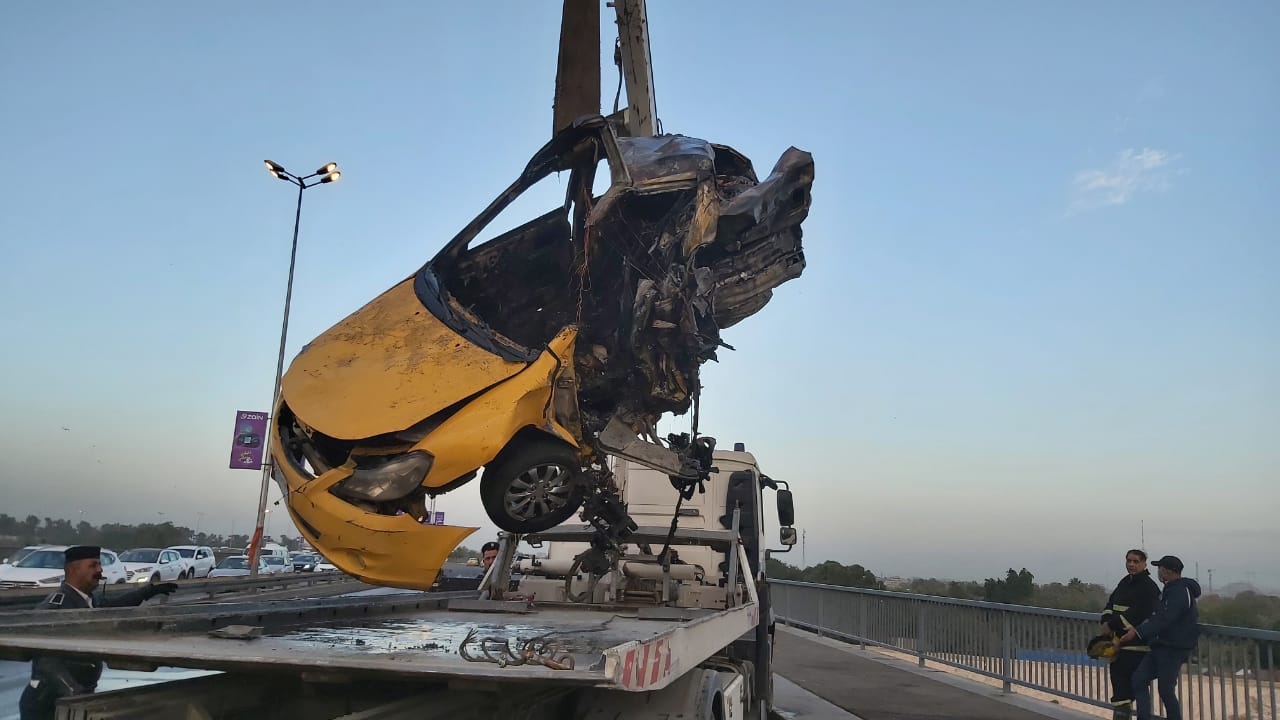 بالصور.. حادث مروع اعلى جسر الجادرية والدفاع المدني ينتشل جثة سائق ويسعف اخر