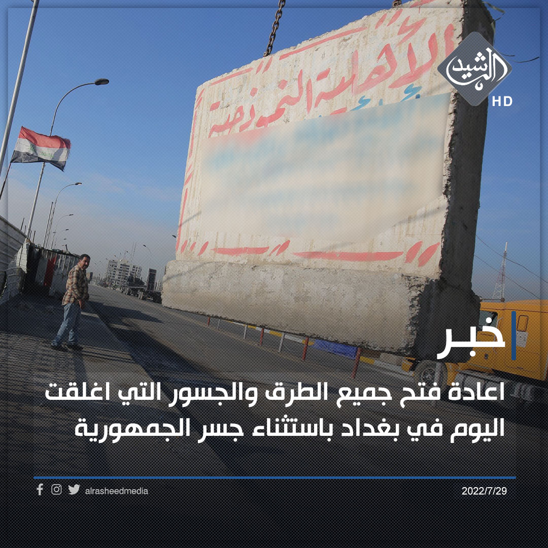 اعادة فتح جميع الطرق والجسور التي اغلقت اليوم في بغداد باستثناء جسر الجمهورية