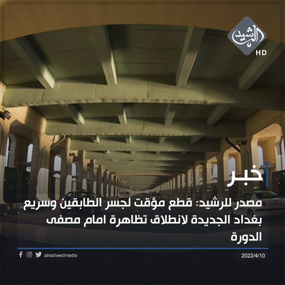 مصدر للرشيد: قطع مؤقت لجسر الطابقين وسريع بغداد الجديدة لانطلاق تظاهرة امام مصفى الدورة