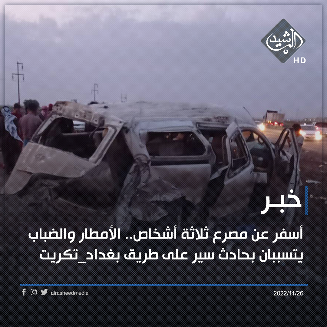 أسفر عن مصرع ثلاثة أشخاص.. الأمطار والضباب يتسببان بحادث سير على طريق بغداد_تكريت