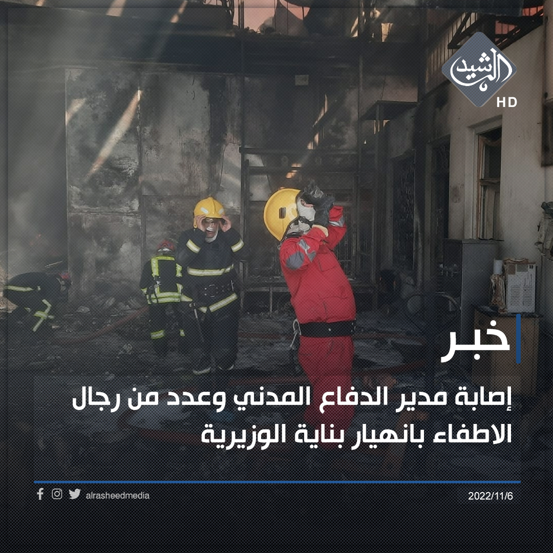 إصابة مدير الدفاع المدني وعدد من رجال الأطفاء بانهيار بناية الوزيرية