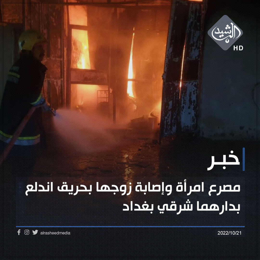 مصرع امرأة وإصابة زوجها بحريق اندلع بدارهما شرقي بغداد