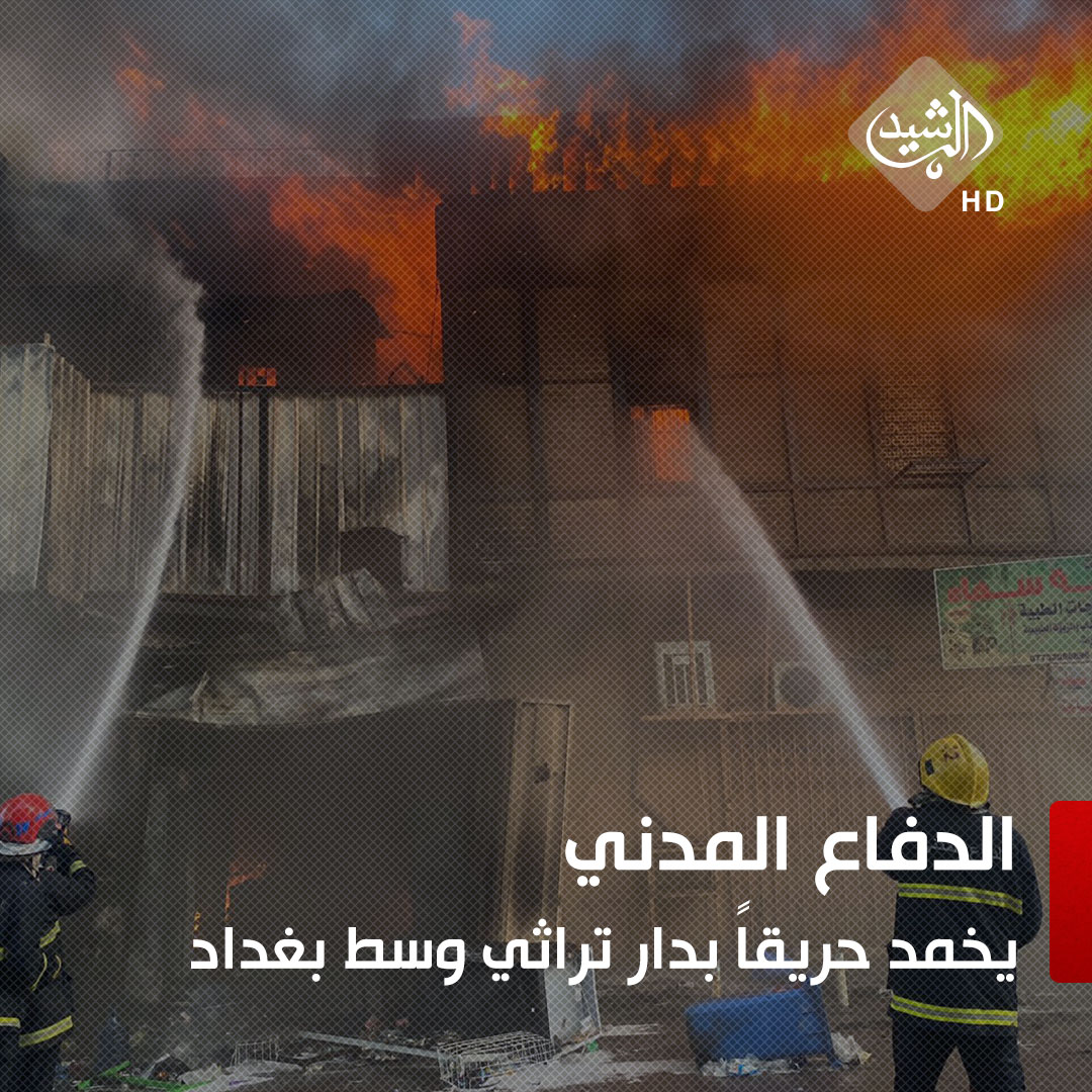 فرق الدفاع المدني تنقذ عائلة وتخمد حريقاً بدار تراثي وسط بغداد