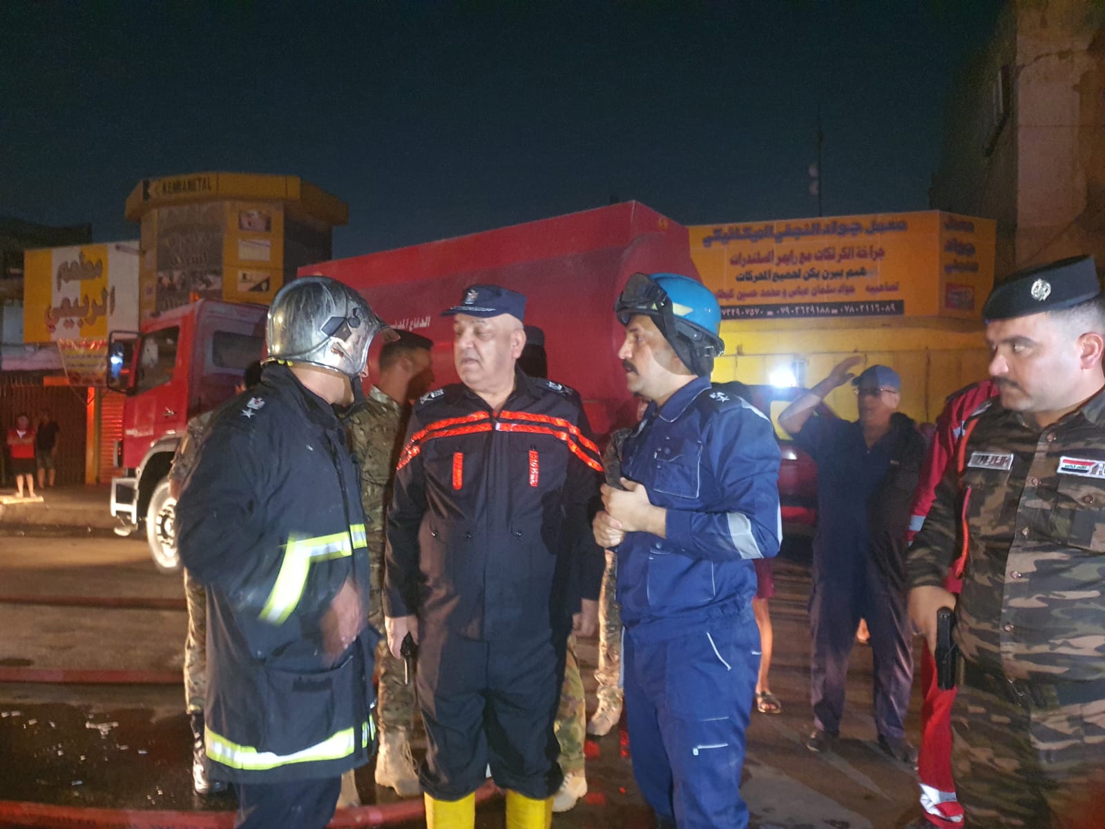 الدفاع المدني يخمد حريقاً اندلع داخل بناية تجارية في منطقة باب الشيخ وسط بغداد