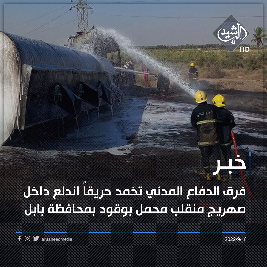 فرق الدفاع المدني تخمد حريقاً اندلع داخل صهريج منقلب محمل بوقود بمحافظة بابل