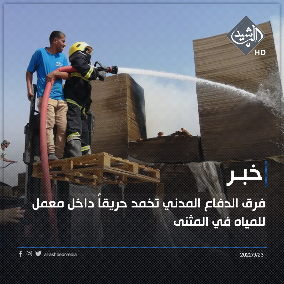 فرق الدفاع المدني تخمد حريقاً داخل معمل للمياه في المثنى