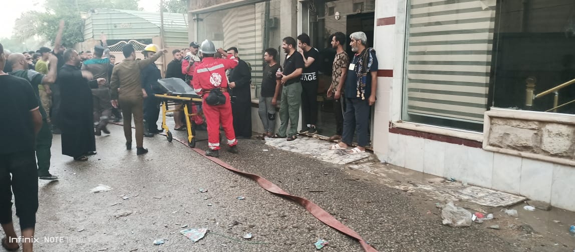 الدفاع المدني يخمد حريقاً داخل فندق وحسينية ويخلي النزلاء وسط كربلاء
