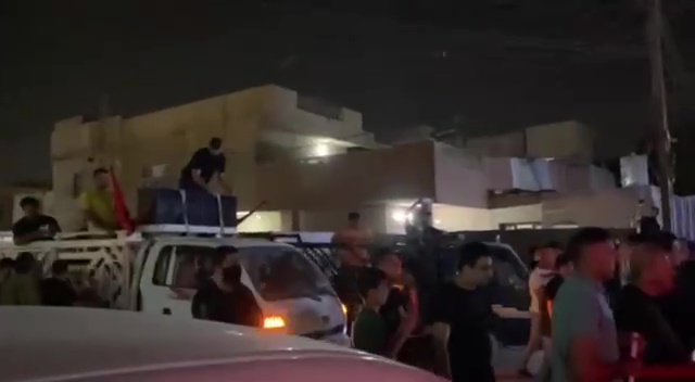 محتجون يضرمون النار داخل جامع الصادقين التابع للحركة الصرخية في حي اور
