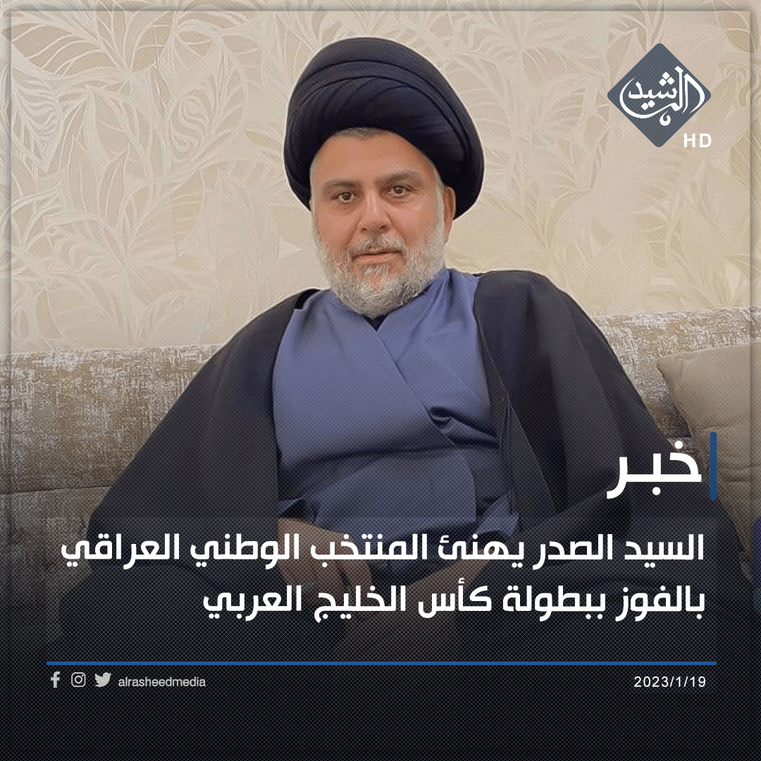 السيد الصدر يهنئ المنتخب الوطني العراقي بالفوز ببطولة كأس الخليج العربي