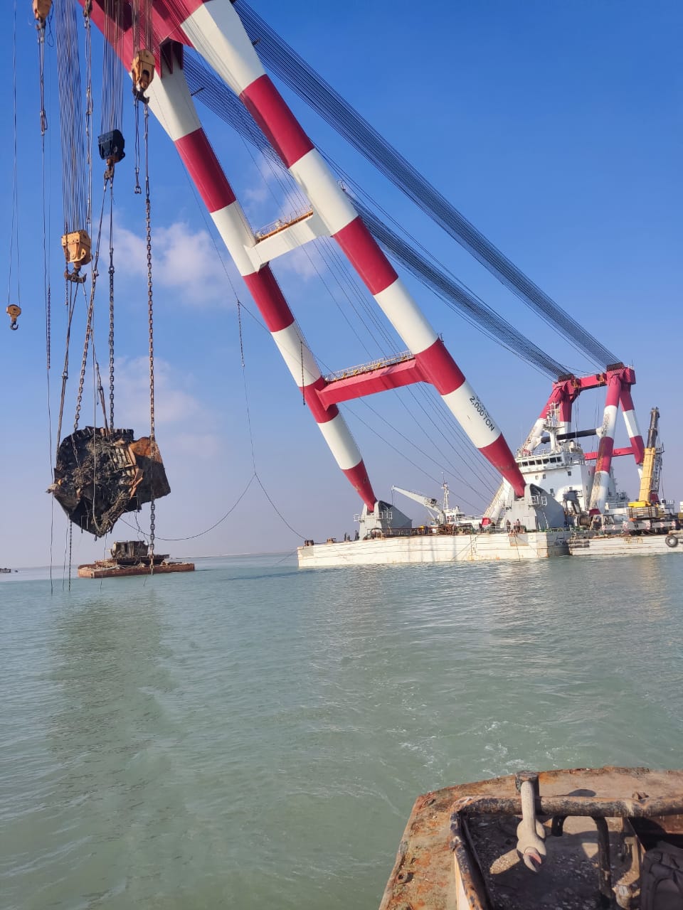 بوزن ٢٦٠ طنا.. النقل تعلن انتشال غارقاً بحرياً من قناة خور الزبير الملاحية