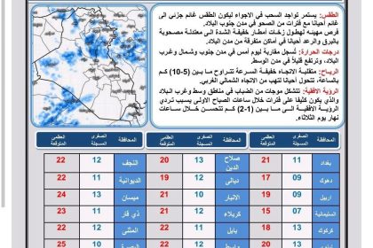 طقس العراق… أمطار خفيفة وارتفاع بدرجات الحرارة خلال الأيام المقبلة