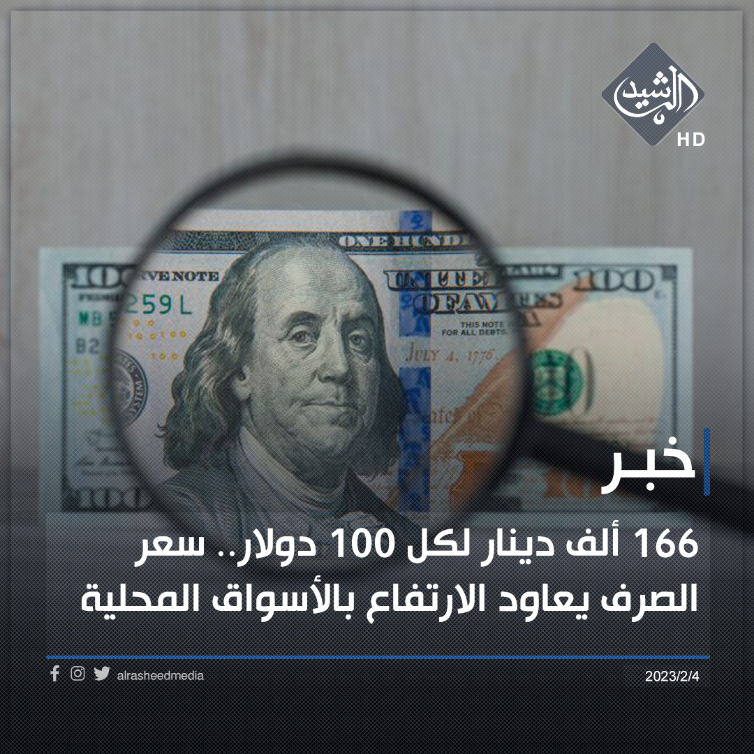 166 ألف دينار لكل 100 دولار.. سعر الصرف يعاود الارتفاع بالأسواق المحلية