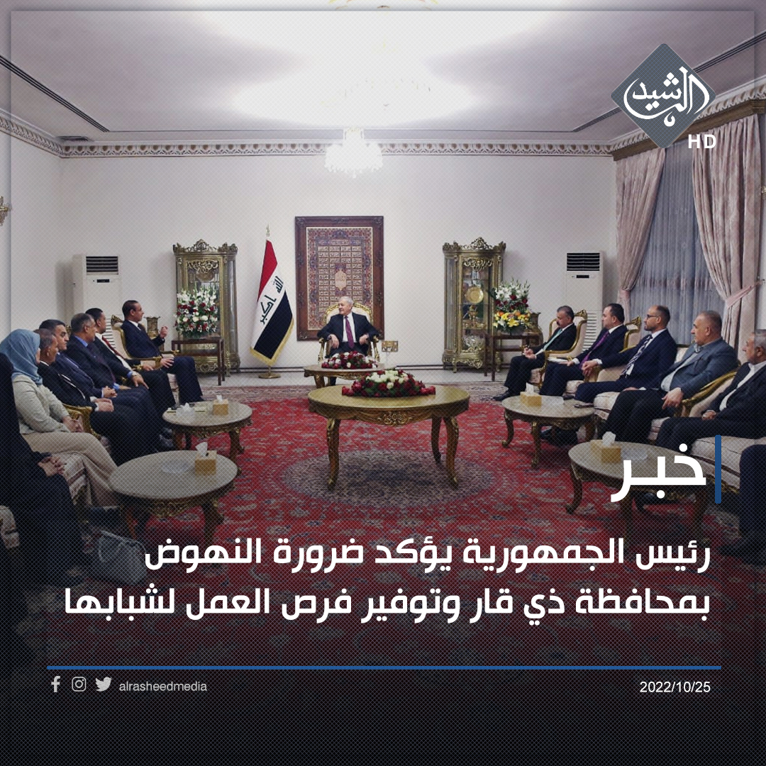 رئيس الجمهورية يؤكد ضرورة النهوض بمحافظة ذي قار وتوفير فرص العمل لشبابها