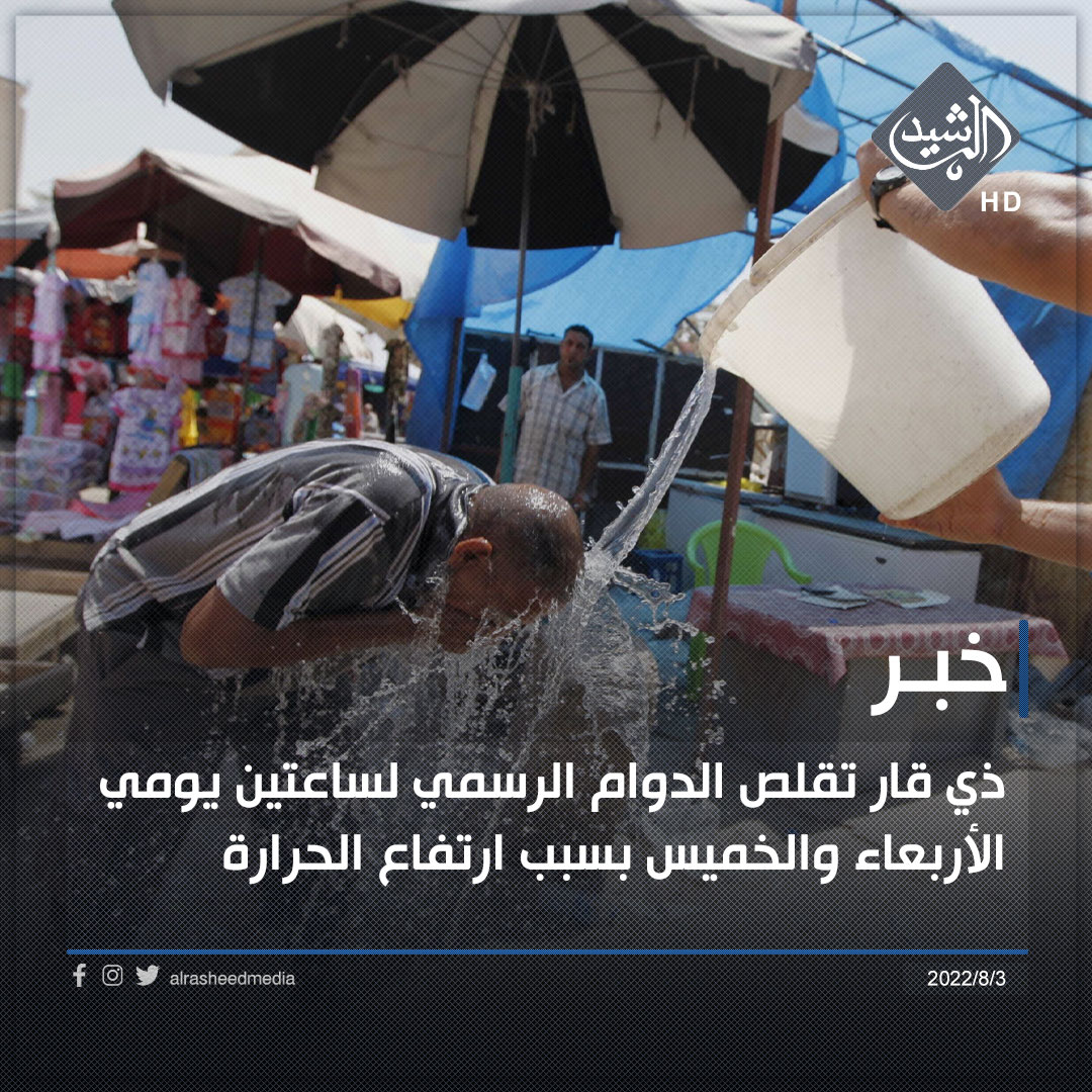 ذي قار تقلص الدوام الرسمي لساعتين يومي الأربعاء والخميس بسبب ارتفاع الحرارة