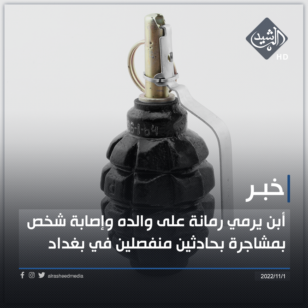 أبن يرمي رمانة على والده وإصابة شخص بمشاجرة بحادثين منفصلين في بغداد