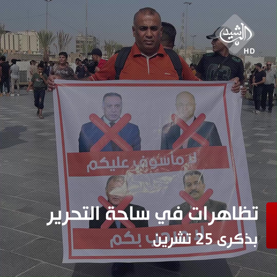 بالصور والفيديو.. تظاهرات في ساحة التحرير بذكرى 25 تشرين