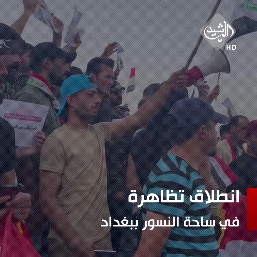 تغطية خاصة لتظاهرات إحياء تشرين من ساحتي النسور والتحرير في بغداد .. مباشر على الرشيد
