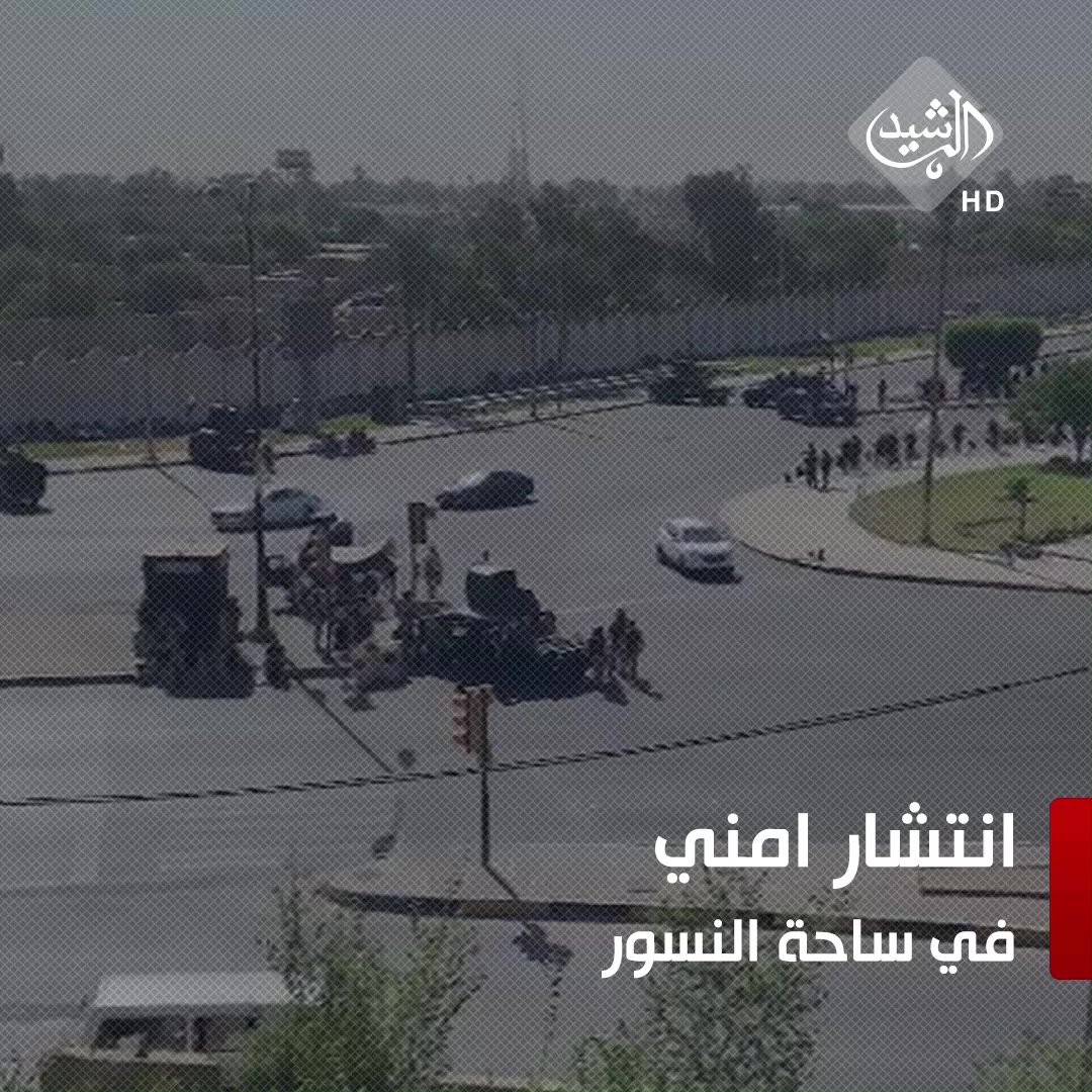 انتشار امني مع حركة طبيعية للسير في ساحة النسور وسط بغداد (فيديو)