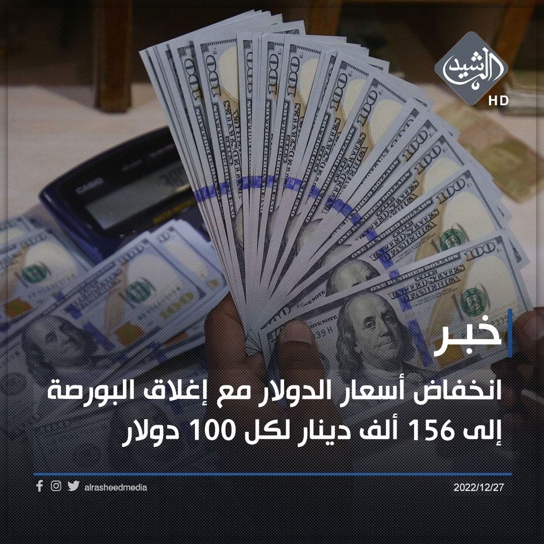 انخفاض أسعار صرف الدولار مع إغلاق البورصة إلى 156 ألف دينار لكل 100 دولار