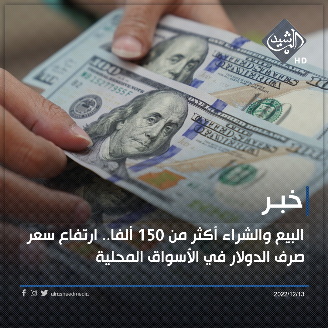 البيع والشراء أكثر من 150 ألفا.. ارتفاع سعر صرف الدولار في الأسواق المحلية