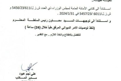 بالوثيقة.. تكليف وزير الاعمار والاسكان "بنكين ريكاني" بمهام رئيس سلطة الطيران المدني