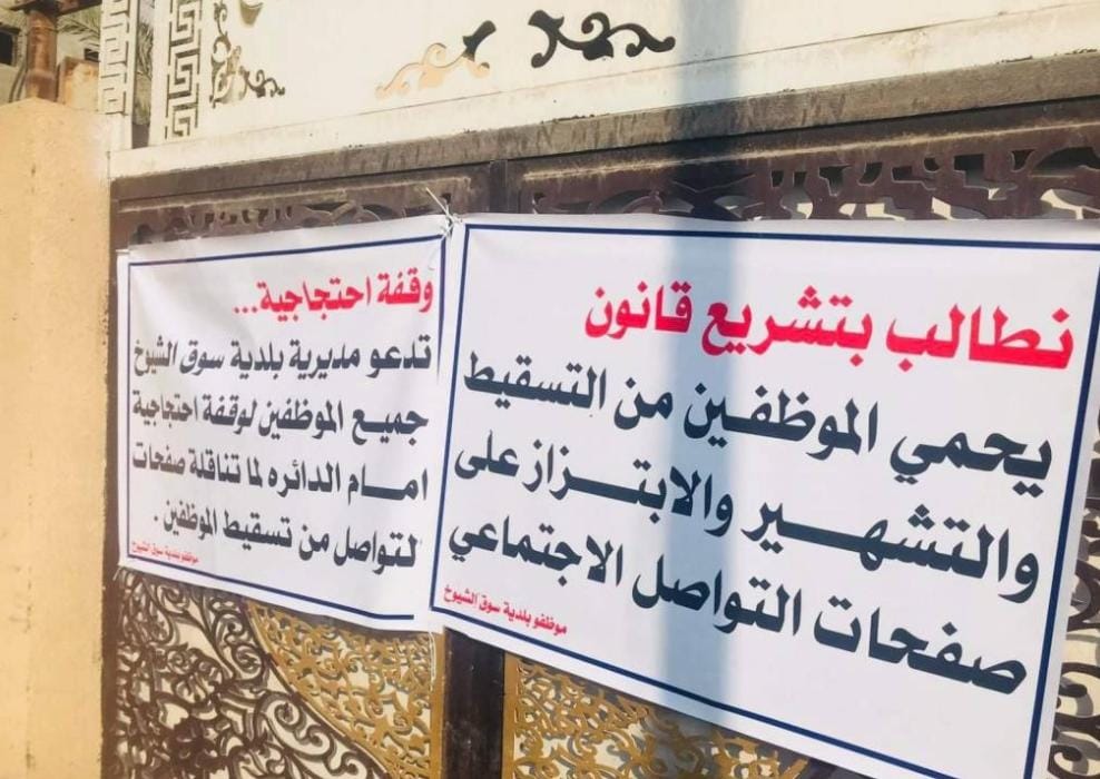 بالصور.. موظفو بلدية سوق الشيوخ يحتجون بسبب تسريب وثيقة اوامر الاستقدام بحق زملاؤهم