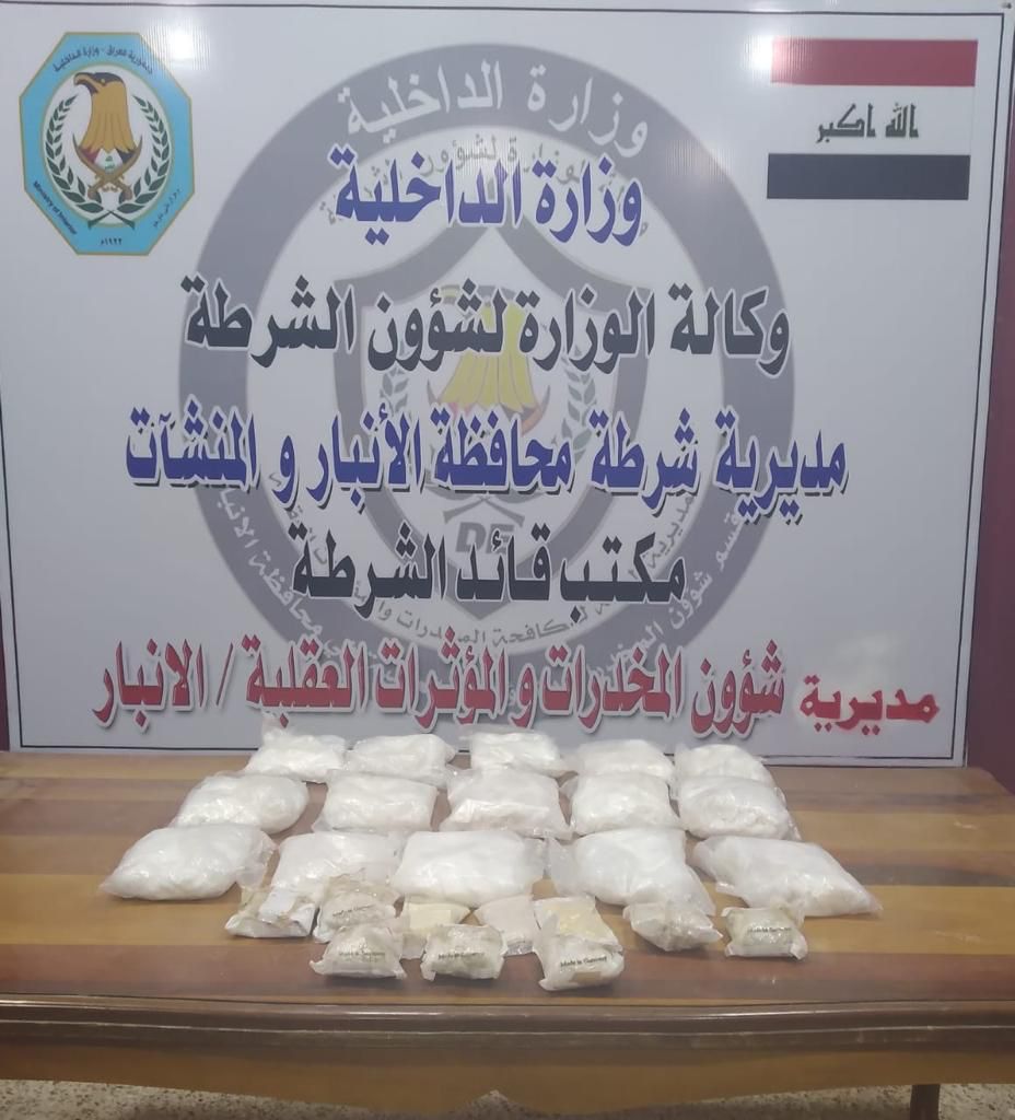 شؤون الشرطة: ضبط أكثر من ٧ كغم من المخدرات في الأنبار