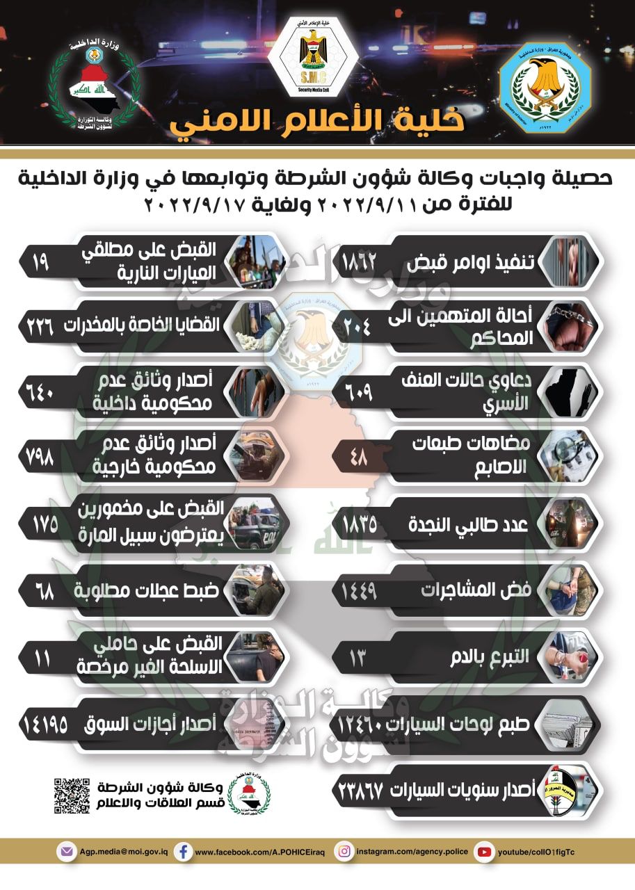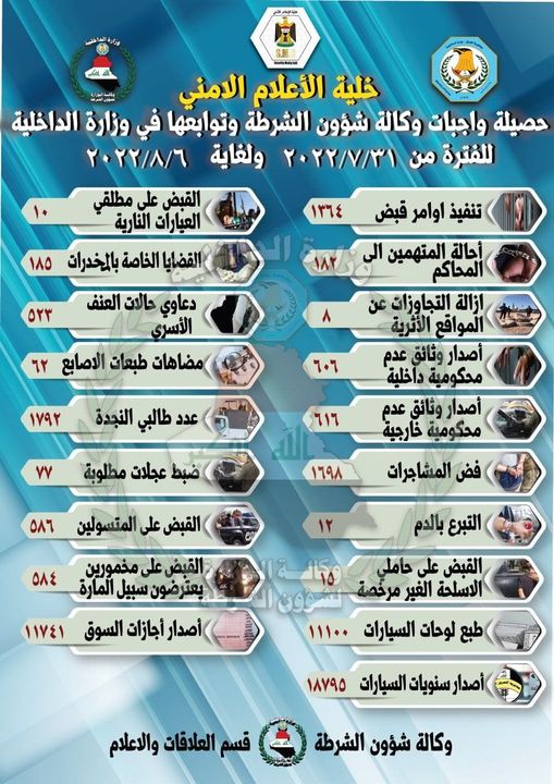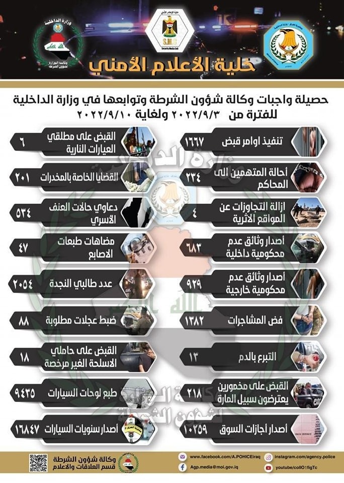 بالأرقام.. حصيلة واجبات وكالة الوزارة لشؤون الشرطة خلال أسبوع