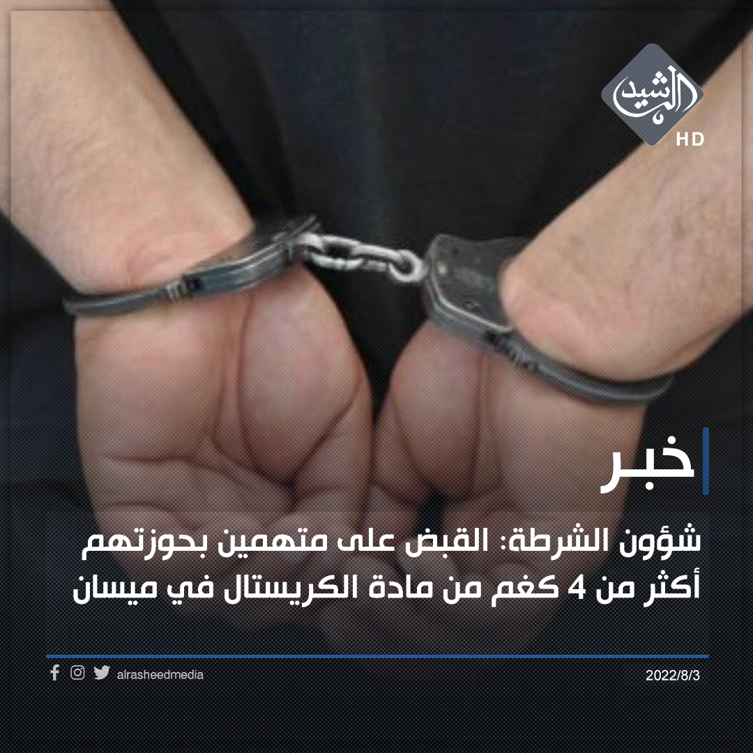 شؤون الشرطة: القبض على متهمين بحوزتهم أكثر من ٤ كغم من مادة الكريستال في ميسان