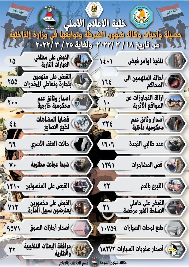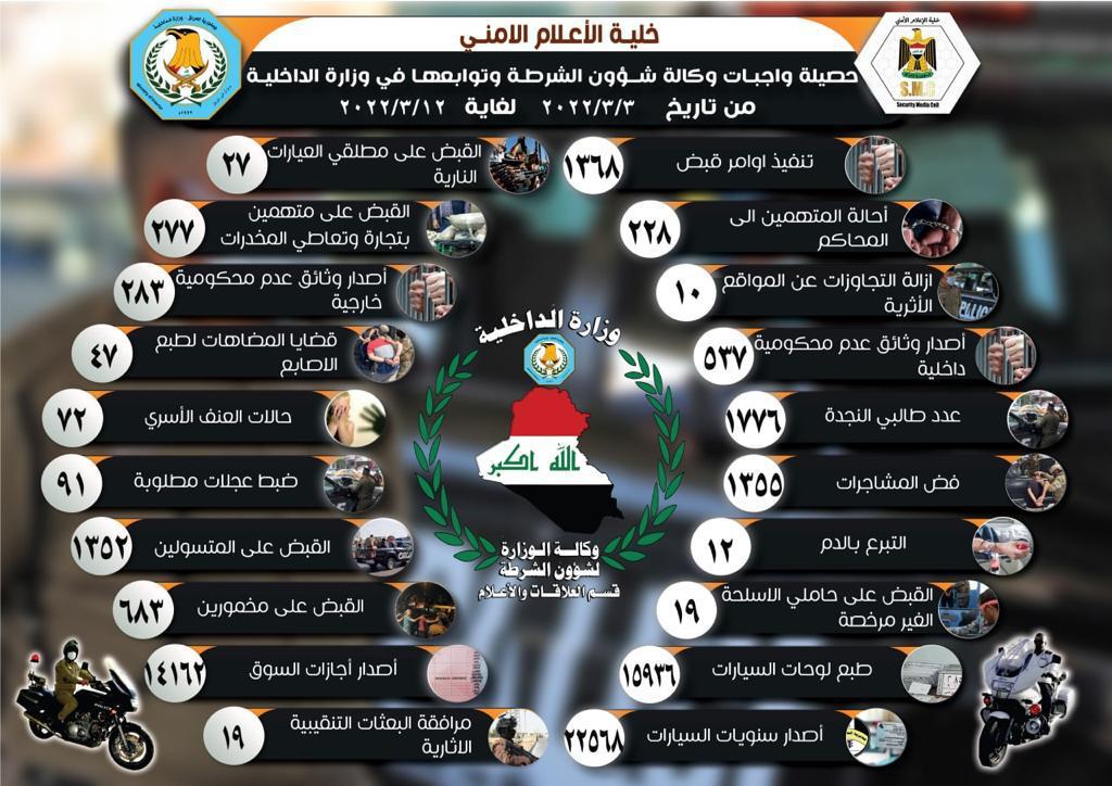 حصيلة واجبات وكالة شؤون الشرطة للاسبوع الماضي