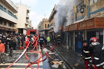 انقاذ 7 عمال والسيطرة على حريق في مخزن للقرطاسية بشارع المتنبي وسط بغداد