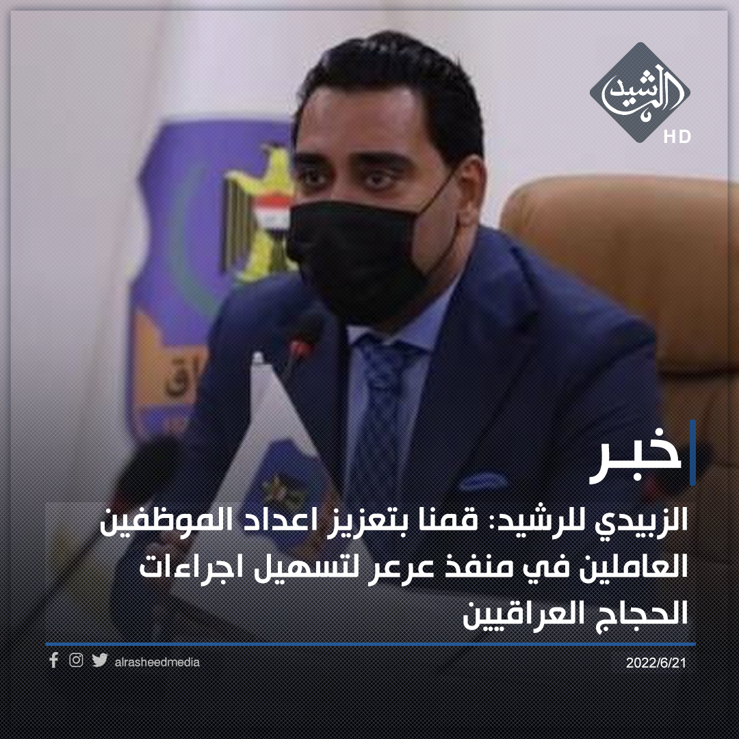 الزبيدي للرشيد: قمنا بتعزيز اعداد الموظفين العاملين في منفذ عرعر لتسهيل اجراءات الحجاج العراقيين