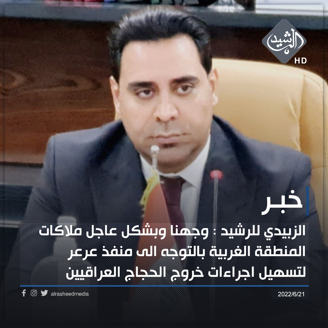 الزبيدي للرشيد : وجهنا وبشكل عاجل ملاكات المنطقة الغربية بالتوجه الى منفذ عرعر لتسهيل اجراءات خروج الحجاج العراقيين