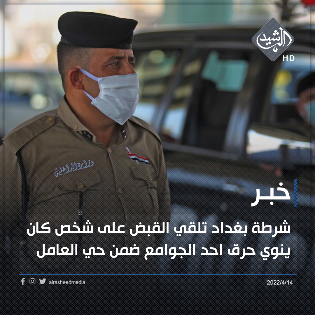 شرطة بغداد تلقي القبض على شخص كان ينوي حرق احد الجوامع ضمن حي العامل